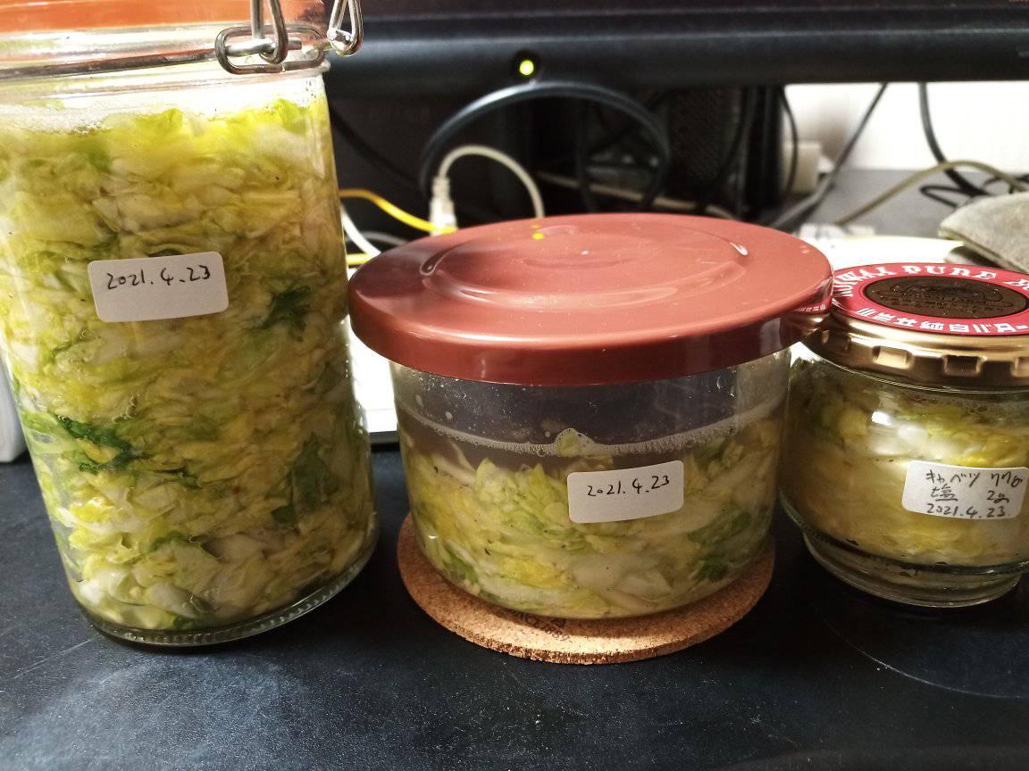 古いキャベツで作ってしまったので、新しいキャベツを買ってきてバッチを増やす。浅漬け器での作成も。